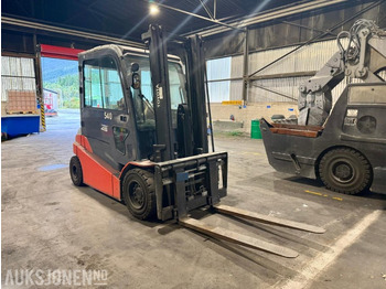 Toyota 8FBMT45 elektrisk truck fra 2016 med en driftstid på 3371 timer. Trucken har en lukket hytte med dører og ruter, og er utstyrt med standard førerstol, armlene, joystickspaker, ratt og dashbord. Den har massivdekk og en løftekapasitet på opptil 4500 kg, med en løftehøyde på 3 meter.